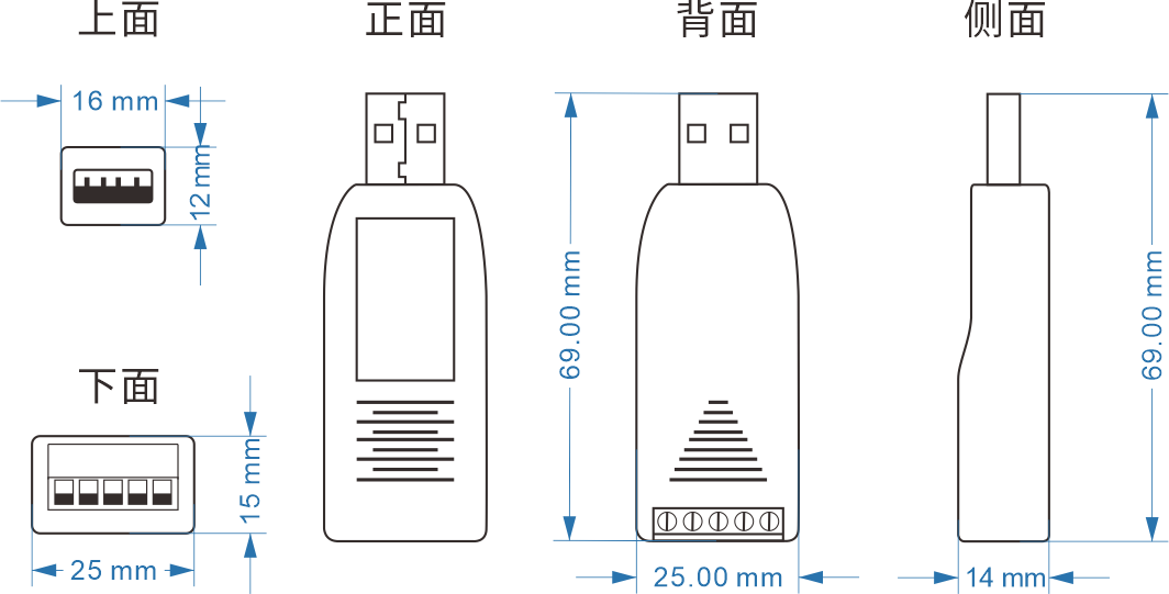 | 电源 | 无源,USB供电 ,功耗<150mW(5V 30mA) |